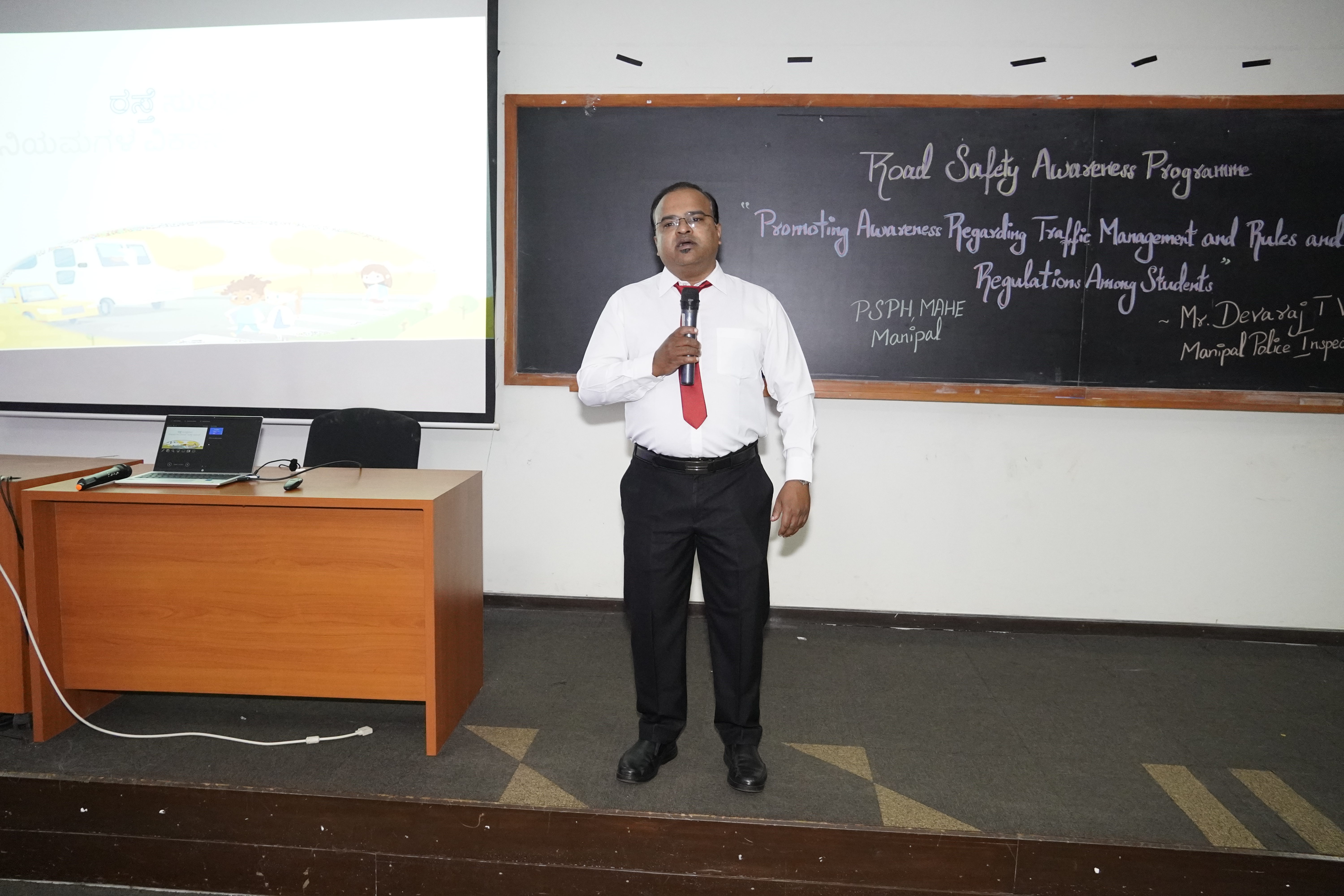 Prasanna School of Public Health (PSPH), Manipal Academy of Higher Education (MAHE), Manipal organised a Guest Lecture on “Promoting Awareness Regarding Traffic Management and Rules and Regulations Among Students” on Saturday, February 01, 2025 (09:30 hours IST) in the Lecture Hall 4A, MMMC, MAHE, Manipal.