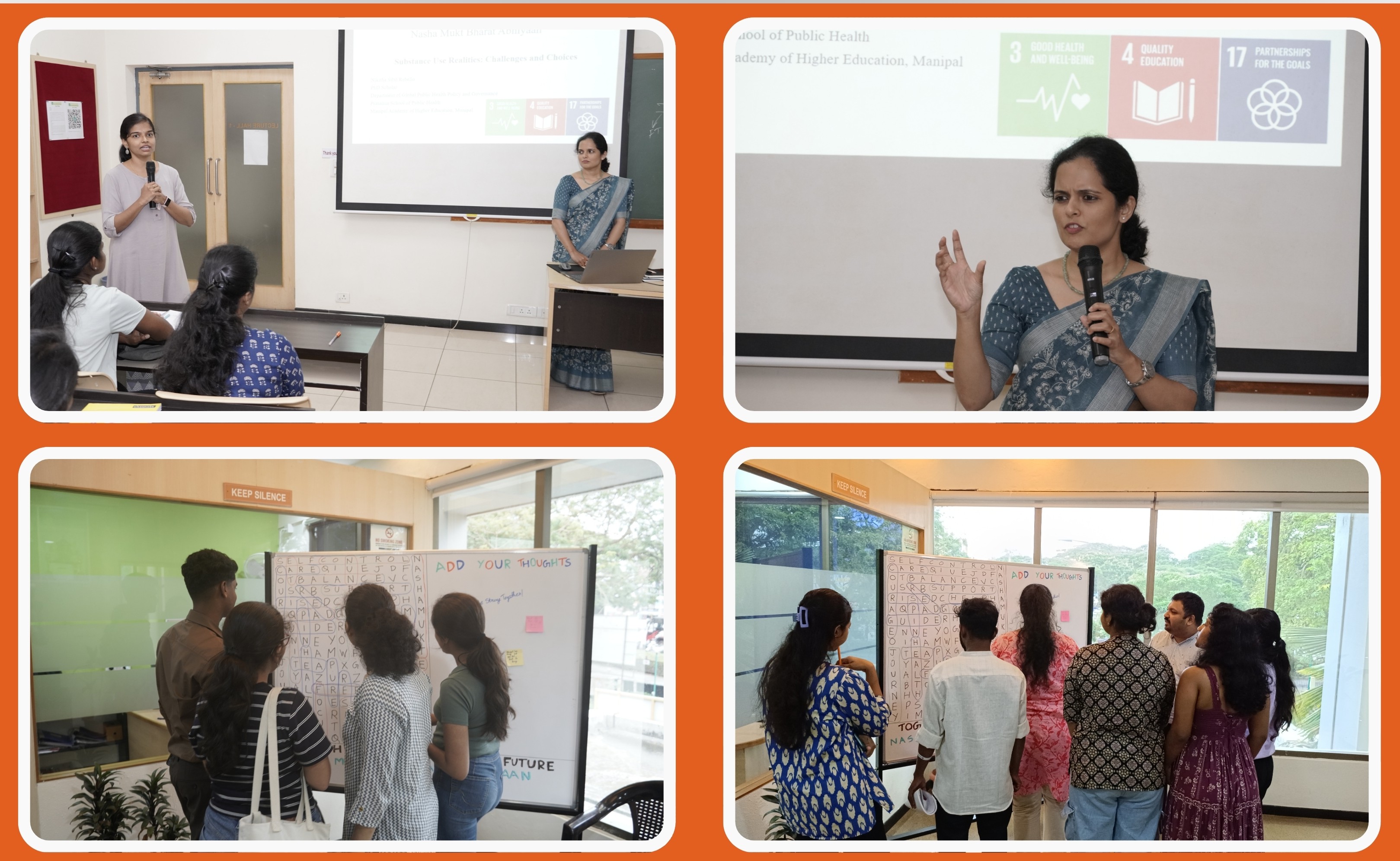 On August 21, 2025 (15:30 to 16:30 hours IST) in the Lecture Hall 1, PSPH, Dr Nikitha Sibil Rebello (PhD Scholar, PSPH, MAHE, Manipal) delivered a talk regarding “Substance Use Realities: Challenges and Choices”.