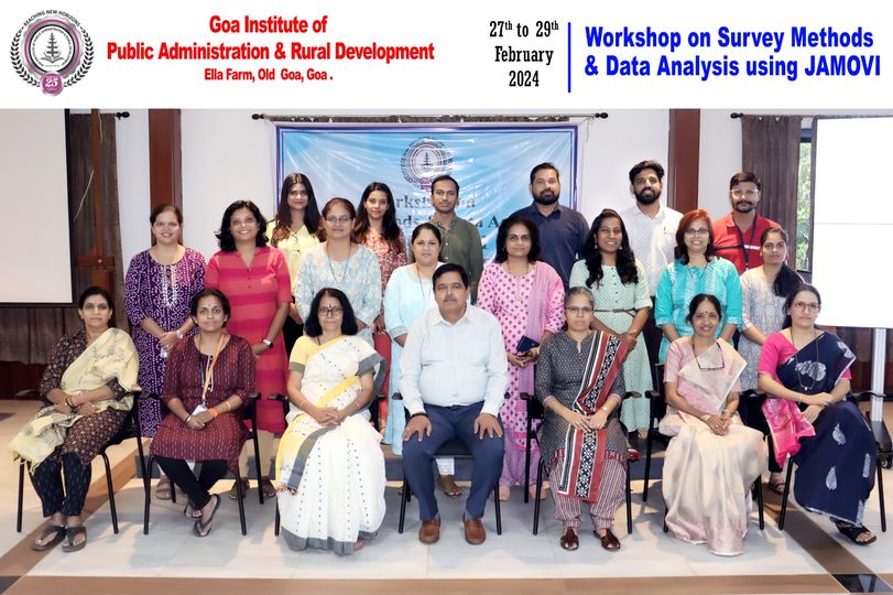 Goa Institute of Public Administration and Rural Development organized a ‘Workshop on Survey Methods and Data Analysis using Jamovi’ on the Premises of Goa Institute of Public Administration and Rural Development, Ella Farm, Old Goa, Goa from February 27-29, 2024.