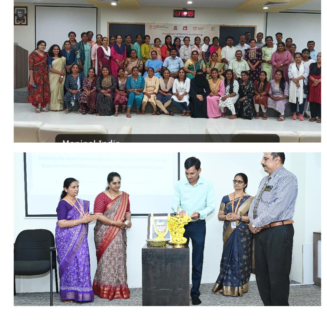 The Department of Speech and Hearing hosted a national seminar titled "Exploring the Latest Trends in Education: A Focus on NEP-2020 and the Empowerment of Children with Special Needs through Rehabilitation" on May 22nd and 23rd, 2025, at Sharda Hall, MCHP Manipal. The seminar was inaugurated by Dr. Arun G. Maiya, Dean of MCHP. Dr. Archana G. and Ms. Reka Patil served as conveners for the event, which was facilitated by Dr. Usha Devadas, Head of the Department of Speech and Hearing. The seminar centered on NEP 2020, highlighting the unique needs of children with disabilities. A total of 50 special school teachers from across Karnataka participated in the event. Ten eminent resource persons addressed various aspects related to NEP 2020. Among them were Mr. Rajkumar, Ms. Shobha, and Ms. Vijalakshmi, representing the All India Institute of Speech and Hearing. All participants provided positive feedback about the seminar, expressing a desire for more such events in the future focused on different areas of disability. They noted that these seminars would enhance their knowledge and enable them to support specially-abled children with greater confidence.