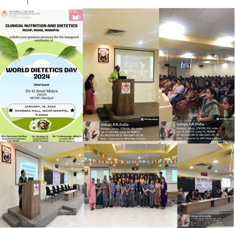 The theme of the world dietetics day 2024 was the role of nutritionsits and dietetics in public health. The programme was lead by emcee CND intern Prathana. The programme began with a prayer song which was then followed by the address of the Dean Dr. Arun G Maiya who spoke on the importance of balanced diet and also customise diet to the individuals. Few fun activities were organised for the faculty. The formal events ended with a vote of thanks by intern Zamzam.