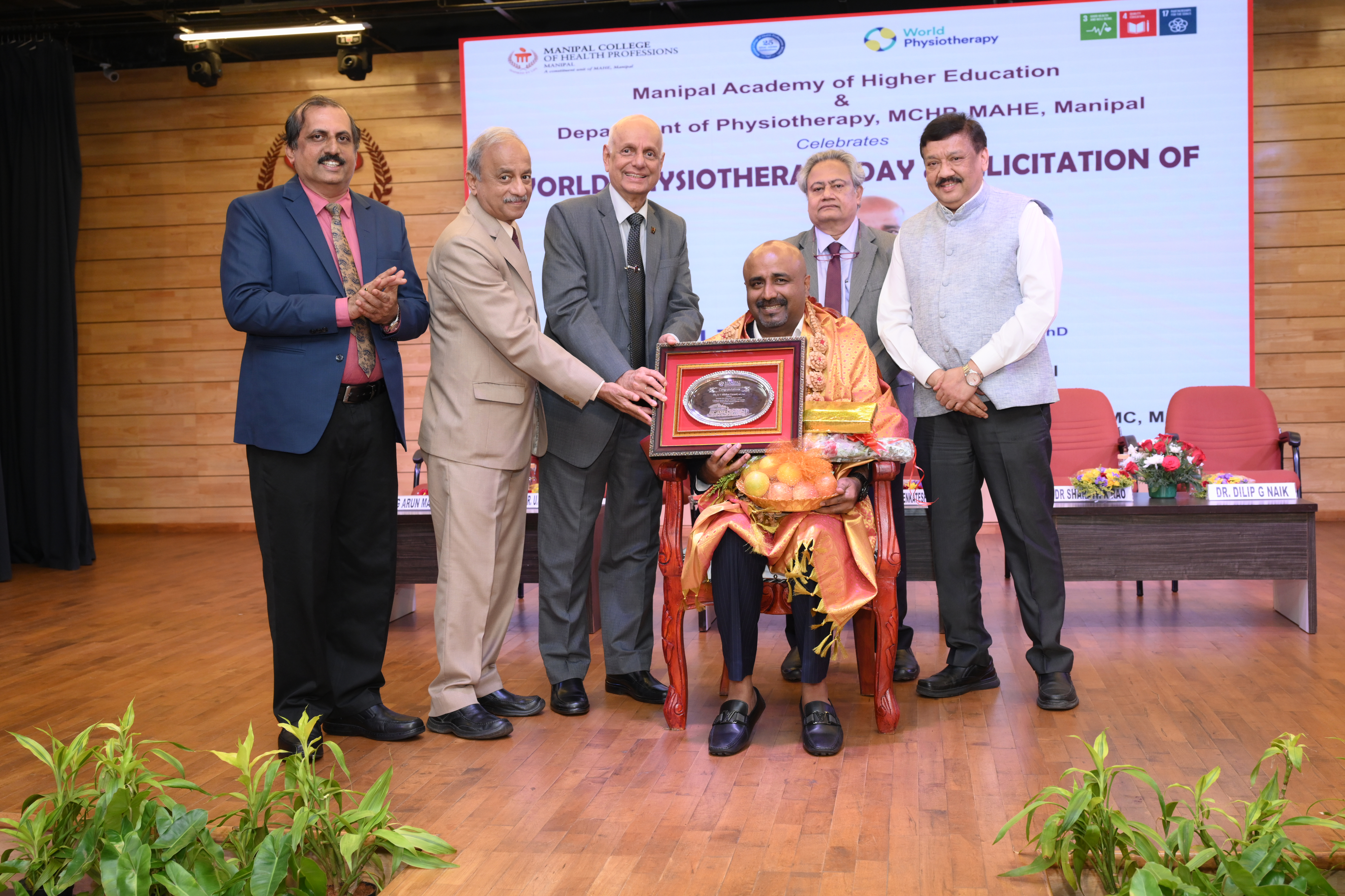 Manipal Academy of Higher Education, Manipal College of Health Professions and Department of Physiotherapy felicitated Dr. U T Ifthikar Fareed on his appointment as Chairperson, Karnataka State Allied Healthcare Council on the occasion of World Physiotherapy Day celebrations. University officials from the Manipal Academy of Higher Education, Pro Chancellor Dr. H.S. Ballal, Vice Chancellor Lt. Gen Dr. M.D. Venkatesh, Pro Vice Chancellor (Health Sciences) Dr. Sharath K Rao, Pro Vice Chancellor (Mangalore Campus) Dr. Dilip G. Naik and the Dean of MCHP Dr. G. Arun Maiya honored Dr. Fareed on the occasion.