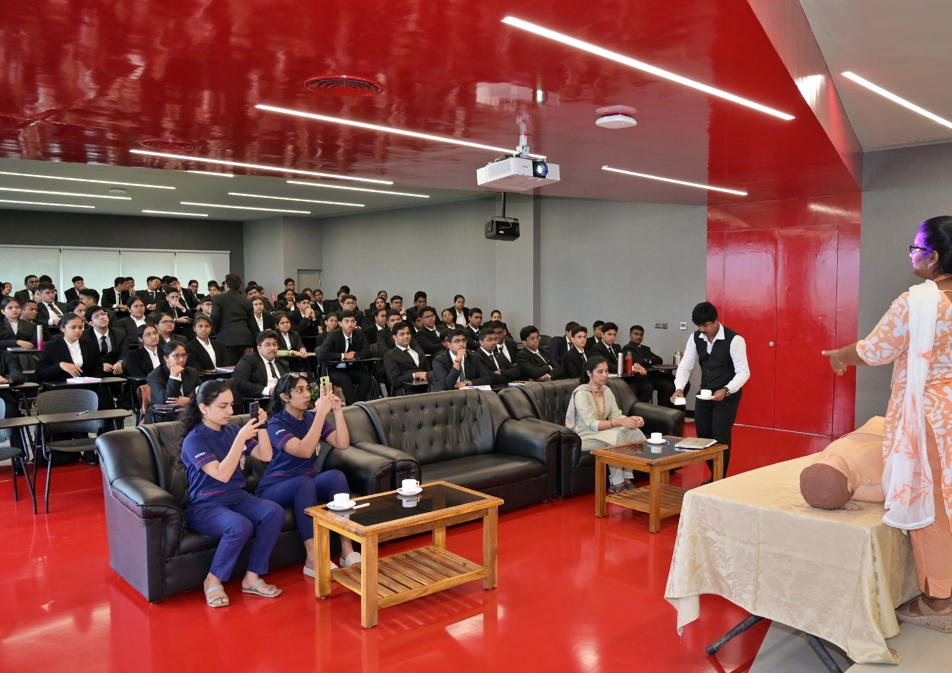 WGSHA August 2, 2024: Welcomgroup Graduate School of Hotel Administration (WGSHA) organized a session on “Basic Life Support” as part of the Immersion Program 2024 for the newly joined students of the Bachelor of Hotel Management (BHM) – 39th course and B.Sc. Culinary Science – 14th Course under the guidance of the principal Dr. (Chef) K Thirugnanasambantham