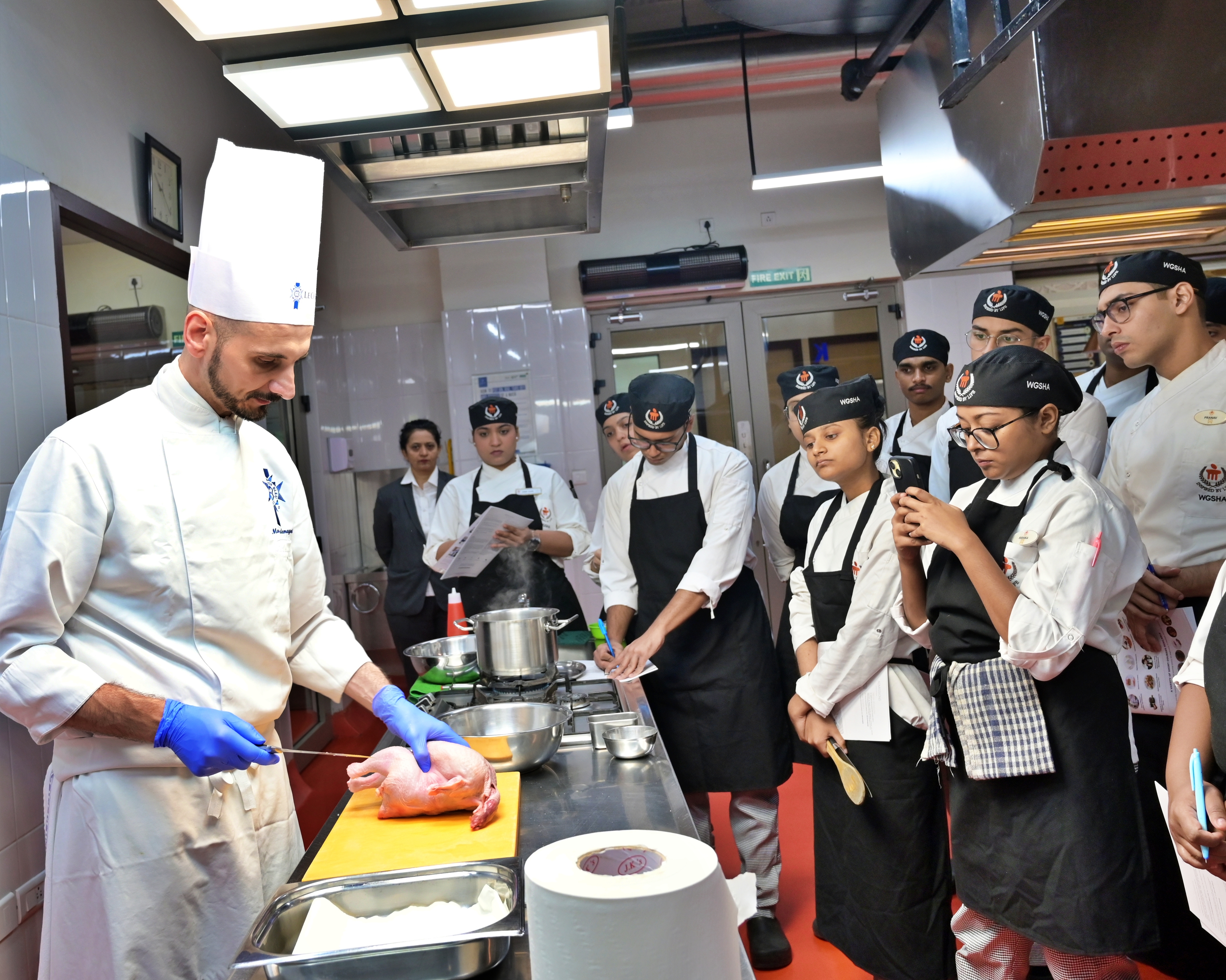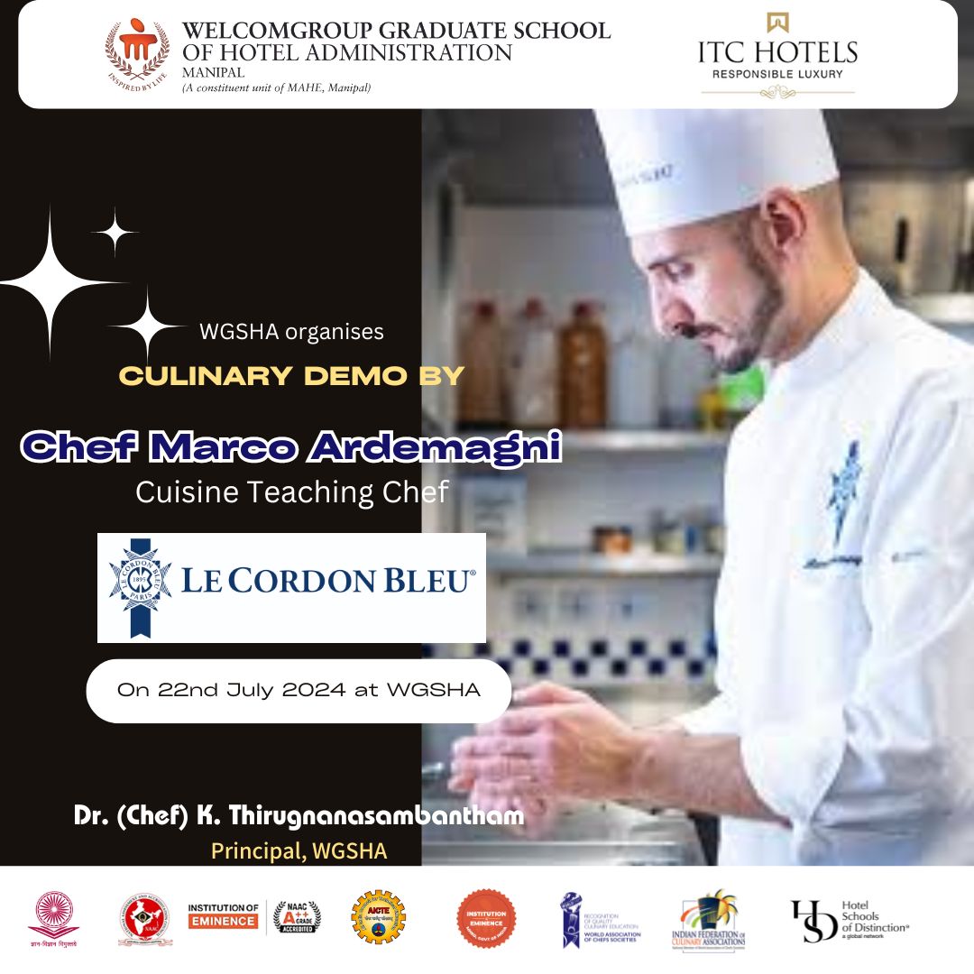 WGSHA July 22, 2024: Final-year Bachelor of Hotel Management students at #WGSHA had hands-on experiential learning during the Culinary demonstration by Cuisine Teaching - Chef Marco Ardemagni from Le Cordon Bleu London.