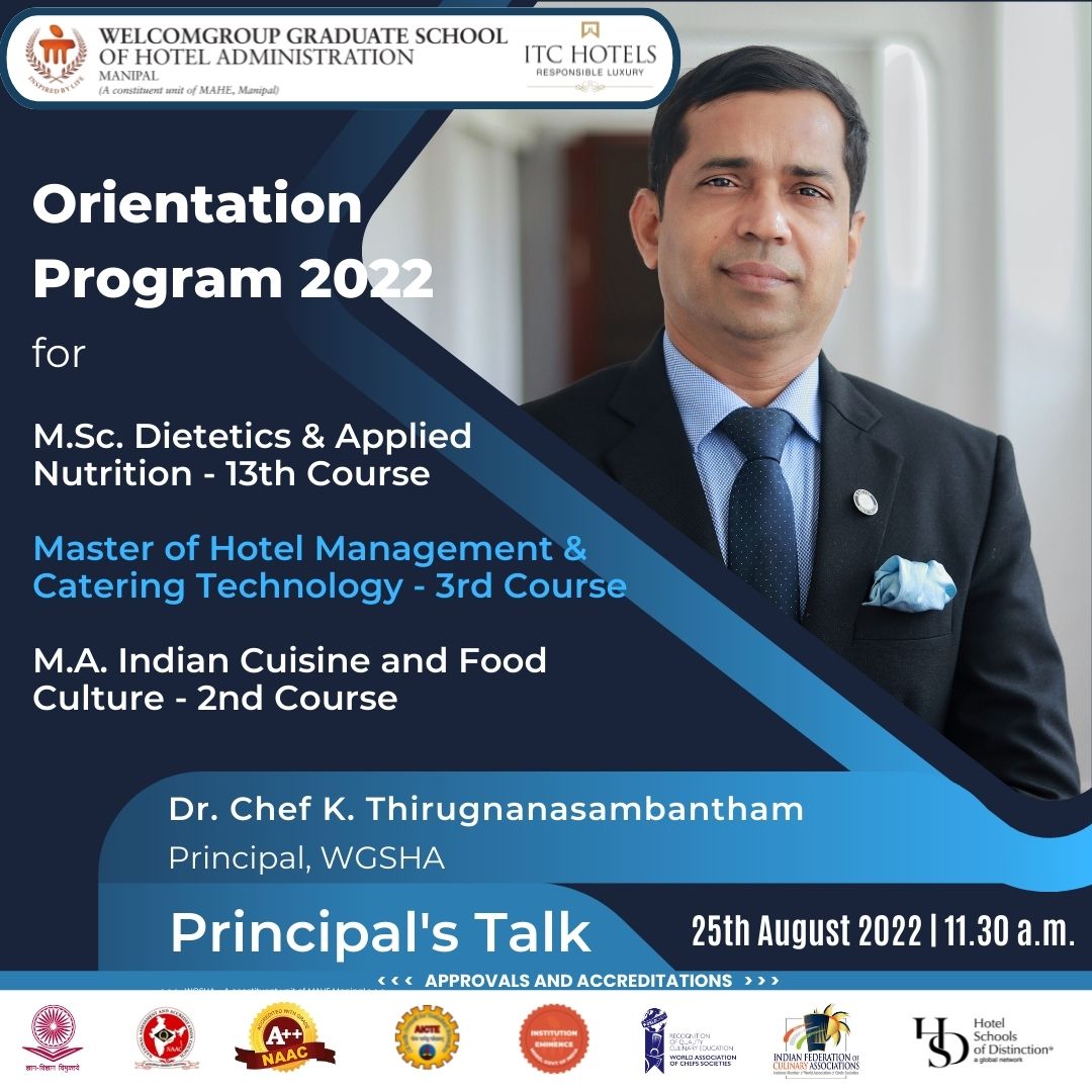 August 25, 2022: The principal's talk is organised for the new batch of M.Sc. Dietetics & Applied Nutrition (13th Course) ; Master of Hotel Management & Catering Technology (3rd Course) ; M.A. Indian Cuisine and Food Culture – (2nd Course)