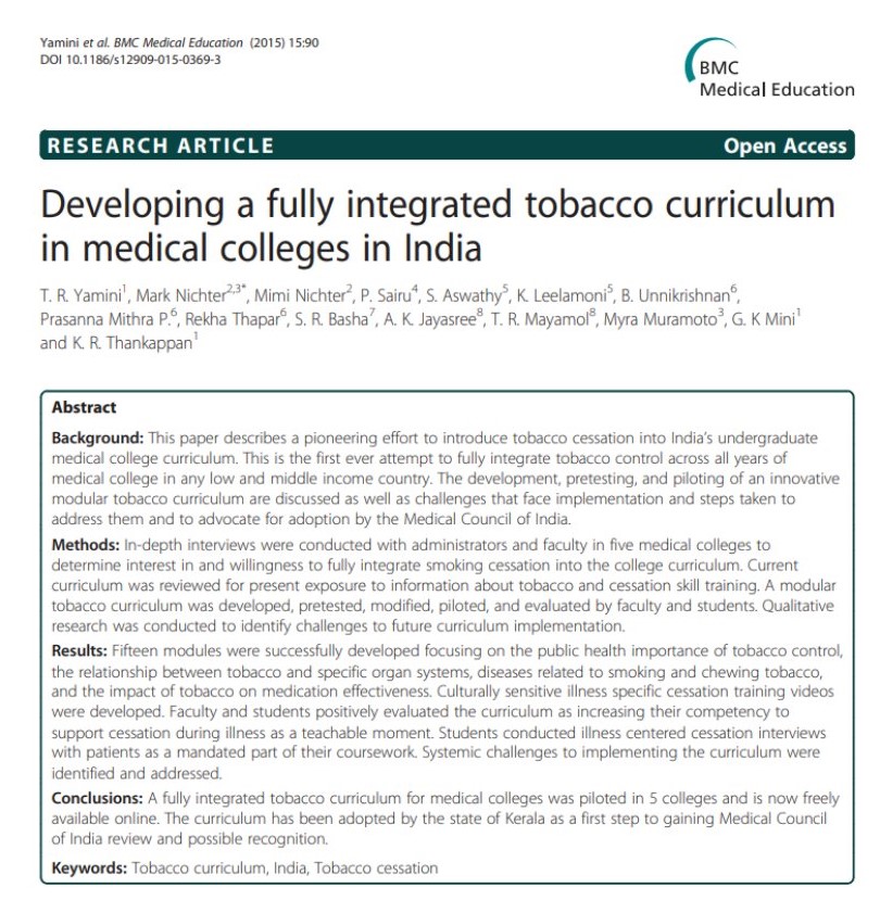 KMC Mangalore takes immense pride in its long-standing commitment to tobacco cessation initiatives, a focus that dates back to our faculty's research published in 2015 advocating for the integration of a tobacco cessation curriculum in medical colleges.