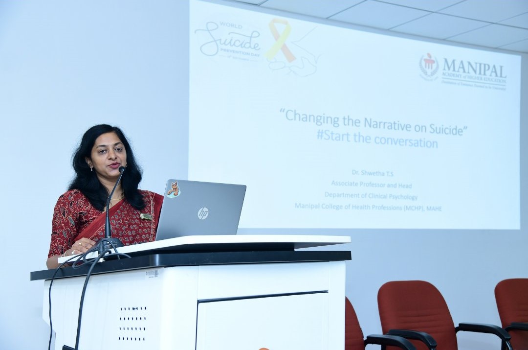 On the occasion of World Suicide Prevention Day 2024, the Department of Psychiatry at Kasturba Medical College, Mangalore, organized a special guest talk titled "Changing the Narrative on Suicide," delivered by Dr. Shwetha TS, Head of Clinical Psychology at MCHP, Manipal.
