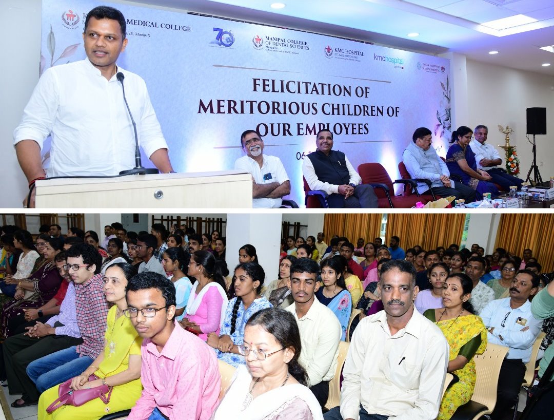 Kasturba Medical College (KMC) Mangalore, in collaboration with Manipal College of Dental Sciences (MCODS) Mangalore, KMC-Hospitals at Attavar and Ambedkar circle, and Durga Sanjeevani Manipal Hospital (DSMH) Kateel, organized a felicitation ceremony for the meritorious children of their employees. The event was held on 6th July 2024, at the Marena Sports Complex, Attavar, Mangalore.