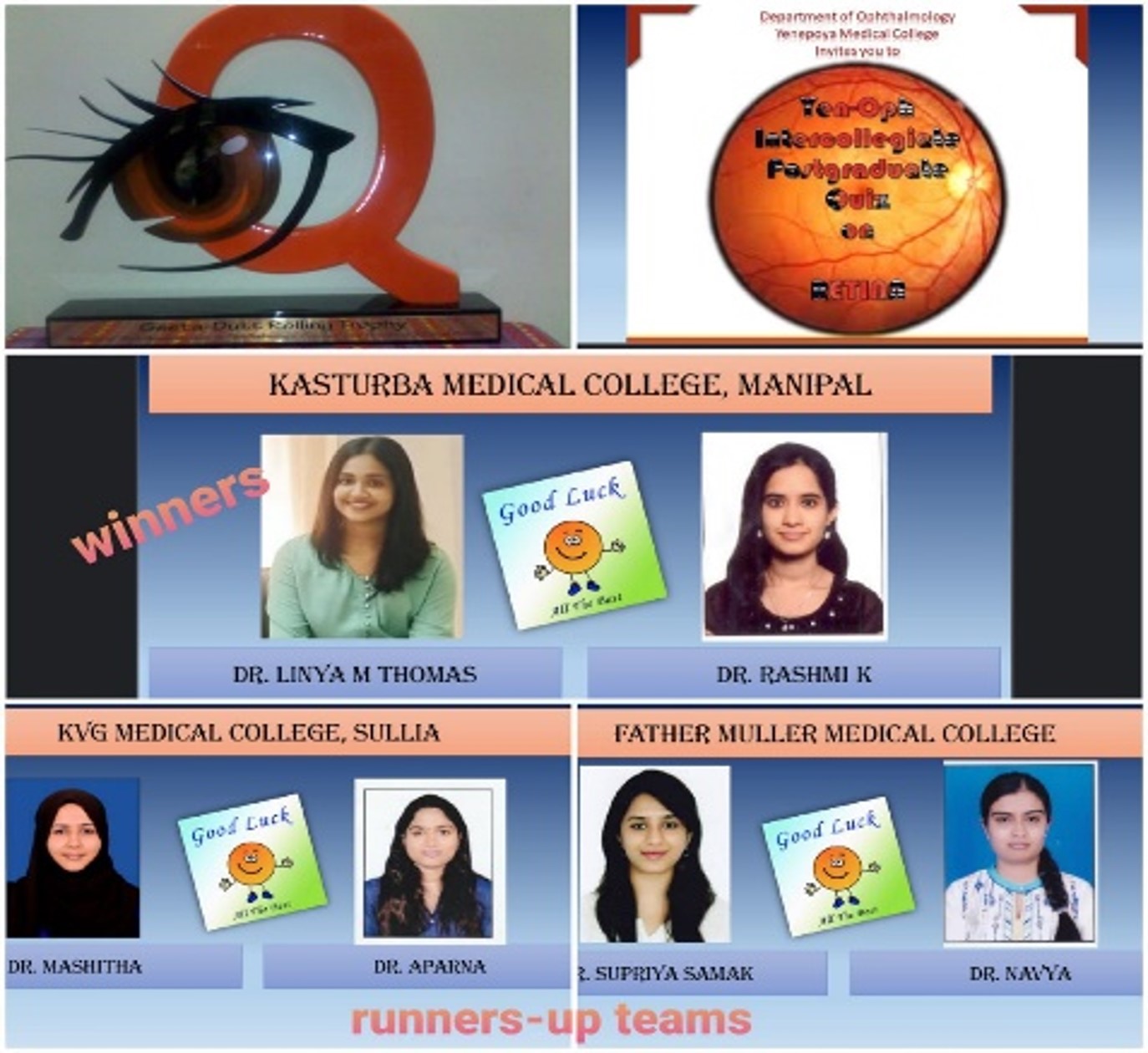 11) Dr. Rashmi K and Dr.Linya M Thomas (Ophthalmology) 1st prize in Yenepoya Ophthalmic quiz, Intercollegiate PG Quiz “Retina" held on 06 February 2021.