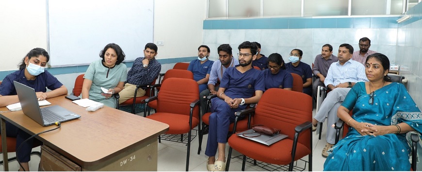 Department of Oral and Maxillofacial surgery in association with Department of Radiodiagnosis and Imaging organized a joint Clinico-radiological Correlation Meet to discuss an interesting case of Bilateral Odontogenic Keratocyst on 9th Jan 2024. The presenter from the Department of Oral and Maxillofacial surgery was Dr. Chitra Tiwari, Final year postgraduate student and from Department of Radiodiagnosis and Imaging was Dr. Shikhar Mathur, Second year postgraduate student.