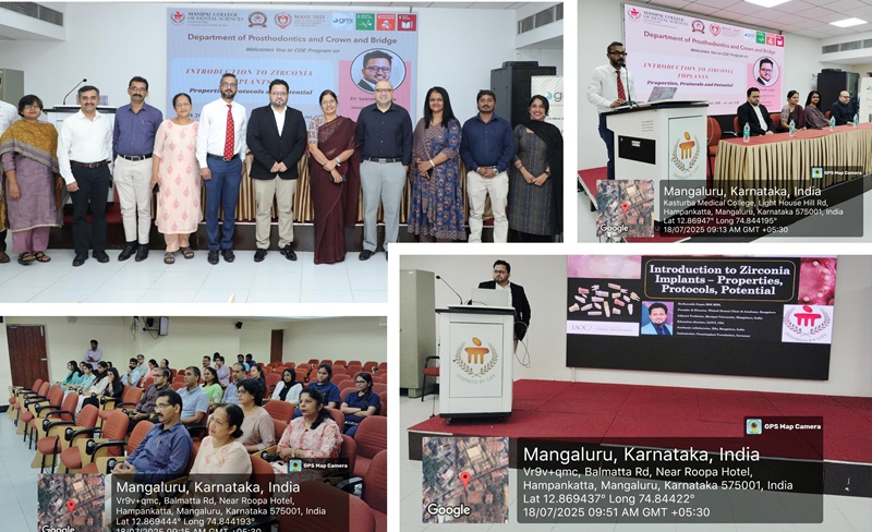 The Department of Prosthodontics, in collaboration with GMI Implants, organized a guest lecture on “Introduction to Zirconia Implants – Properties, Protocols and Potential.” The session was conducted by Dr. Saurabh Gupta, a distinguished alumnus from the batch of 2004 and adjunct faculty at Manipal College of Dental Sciences, Mangalore.