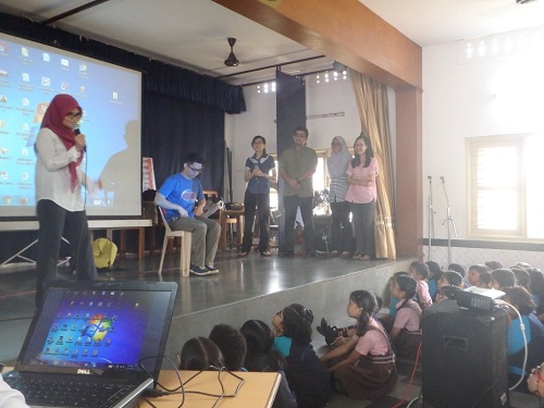 Total number of 200 Children from 1st, 2nd and 3rd standards participated in the program with their teachers. Program started with enthusiasm and spirit filled big Yes! from little children when they were asked by their teacher if they want to meet the doctors who care for their teeth. We were welcomed by the class teacher’s welcome address along with the claps and smile of the little angels. Almighty’s blessings were sought by a beautiful prayer by the students of Lourdes Central School, following which stage was set for dental education by an interactive entertainment program. Post graduate students educated children regarding various aspects of oral hygiene practices through playing a video skit, singing song and showing a cartoon. Interns did a beautiful role play with great enthusiasm. Audience were then grouped into small batches and brushing method was demonstrated by post graduate students.
