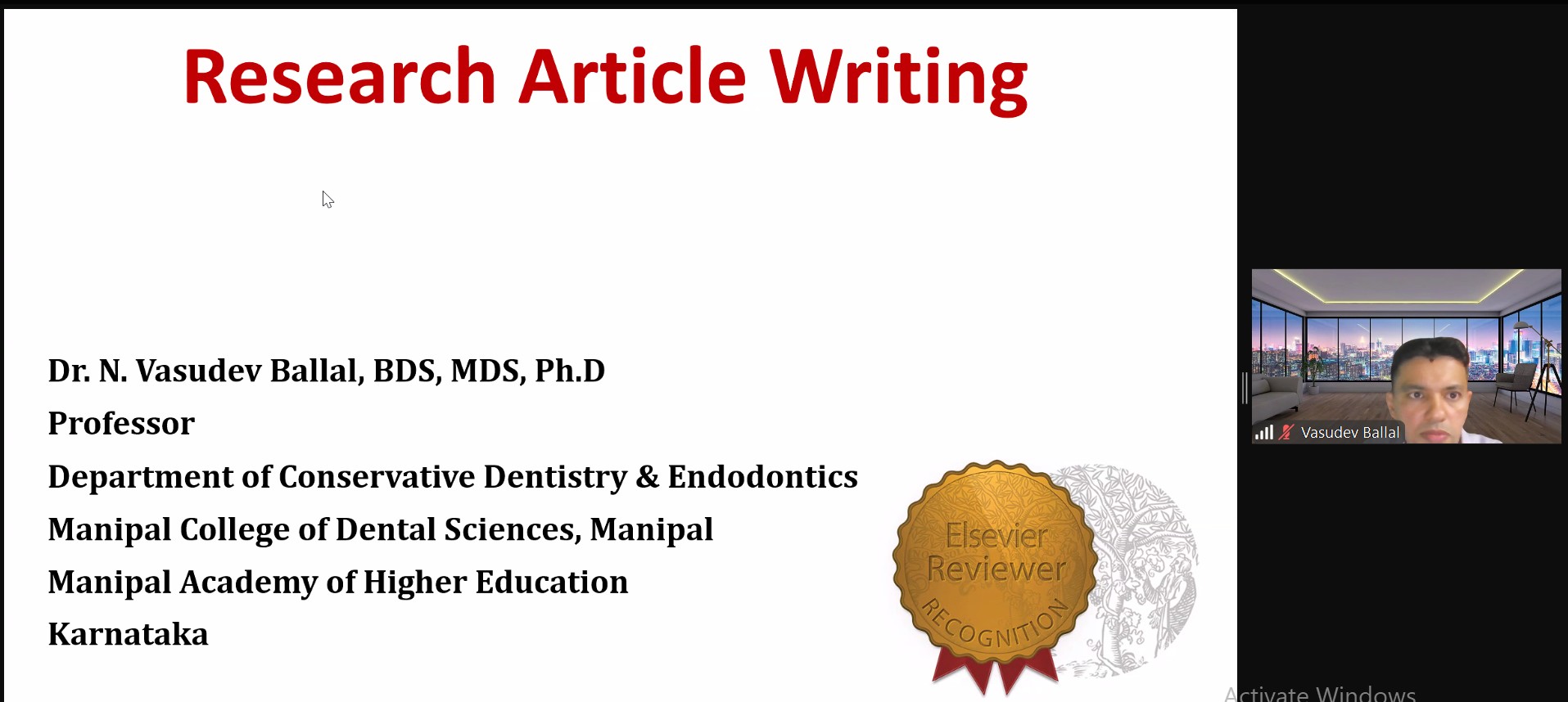 The Department of Conservative Dentistry and Endodontics, MCODS Manipal, takes pride in sharing that Dr. N. Vasudev Ballal, Professor, was invited as a guest speaker for an online session on “Research Article Writing.”