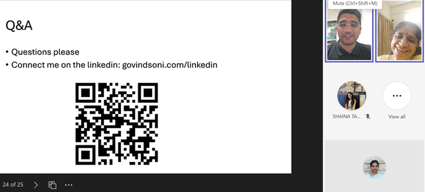 Mr. Govind Soni, Database Manager (NMO & CMS) at Oxford Hospitals, NHS Hospital Trust, Oxford, and Alumnus of MCON Manipal (BSc Nursing 2014–2018 batch), spoke on the different job opportunities in nursing as well as preparedness for a future career. He also narrated how to change the patients’ lives. He encouraged the students to network with various departments and take full advantage of the resources MAHE offers. A total of 92 students and six faculty members attended the session. Participants clarified their doubts regarding higher education opportunities in data science.