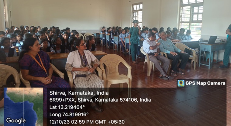 The program was started with an invocation by Ms. Nelifer Shreya and Ms.Glanish Aranha, which was followed by a welcome address by Ms.Glanish Aranha, 2nd year PBBSc Nursing student. The program was inaugurated Ln. Mr.Felix D’Souza, President, Lions Club, Shirva, Mrs. Sabeena Priya Noronha, Principal, St.Mary’s High school, Shirva, Ms. Nisha, Community Health Officer, Shirva, Dr Shashidhara YN Head Department of Community Health Nursing MCON and, Ms.Tejaswi the student representative by lighting the lamp