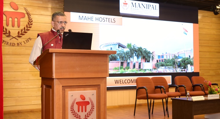 The Chief Guest, Lt. Gen. Dr. M.D. Venkatesh, Vice Chancellor of MAHE, then addressed the gathering. He highlighted the world-class facilities available at the university, emphasized strategic approaches toward achieving global learning outcomes, and urged students to actively engage in the affective domain of education.
