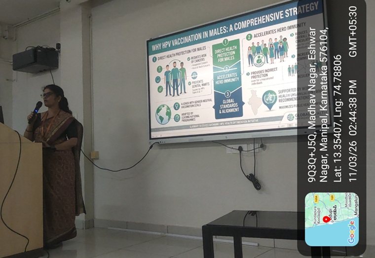 The activities of the celebration continued on March 11, 2026, as well, with a guest lecture based on the theme: “A Woman’s Health is Her Fundamental Right: Ensuring Access to Lifesaving Human Papilloma Virus (HPV) Screening and Vaccination” by Ms. Surekha, Lecturer, Department of Community Health Nursing, MCON, MAHE, Manipal, for the VI Semester BSc Nursing students. The session emphasized the importance of preventive healthcare and how women can ensure that their fundamental rights are protected with easy access to essential screening, especially HPV screening and vaccination services. 70 students attended the session.