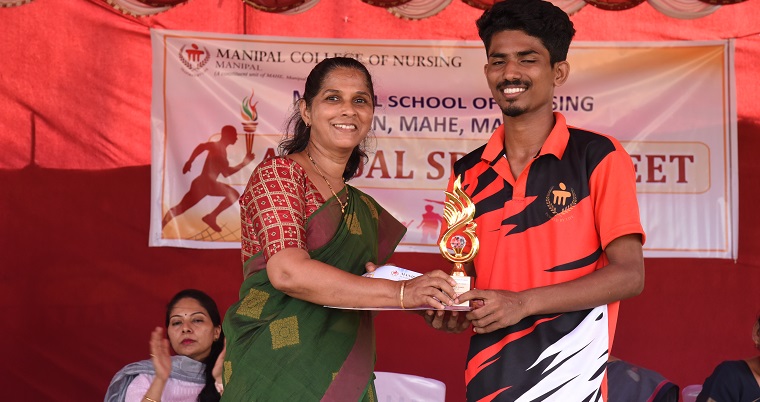 The valedictory ceremony began at 4.00 pm. Dr Tessy Treesa Jose, Associate Dean was the chief guest. Mrs Bharathi R Nayak, Assistant Professor, MSON, welcomed the gathering. The chief guest addressed the gathering and congratulated the students for their enthusiastic participation. She also felicitated the winners of the sports meet. The program ended with a vote of thanks by Mr Rakesh, II year Diploma student, MSON. Ms Bharathi, Assistant Lecturer was the master of ceremony for the evening program.