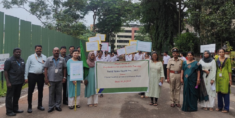 As part of creating awareness among the public on the day and theme a ‘Memory walk’ was organised on 9th Oct 2023. Dr. Tessy Treesa Jose, Associate Dean and HoD, Psychiatric (Mental Health) Nursing highlighted the significance of observing World Mental Health Day. She flagged off the memory walk. The faculty, research scholars and students from 2nd year MSc(N) speciality, II Year PBBSc (N) and 3rd year BSc(N) participated in the programme.