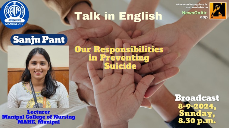 A radio talk on “Our responsibilities in preventing suicide” was broadcast on 8th September 2024 at 8:30 pm at Akashavani, Mangaluru. Ms. Sanju Pant, Lecturer, Department of Psychiatric (Mental Health) Nursing, MCON Manipal, was the speaker. She spoke on the common causes, risk factors, myths and facts, and warning signs of suicide. She also emphasized the fact that most suicide instances are preventable and elaborated on preventive strategies.