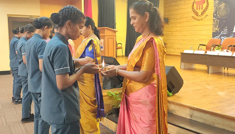 Dr. Anice George, Professor and Head, Research and Collaboration MCON, MAHE, Manipal was the chief guest for the program. She congratulated the students who lit the lamp and addressed the importance of lighting the lamp. She addressed freshers regarding the confidence and psychomotor skills required in the nursing profession, where nurses are giving hope rather than mechanical care.