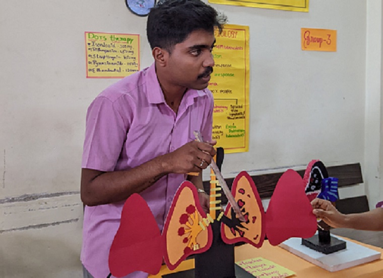 Manipal School of Nursing, MCON, MAHE, Manipal conducted a Scientific Exhibition competition for the students of MSON on 13/04/2023 at 1.30 pm. There were eight groups consisting of six participants in each group. Topics of the exhibition were blood circulation, family planning, tuberculosis, routes of drug administration, dialysis, covid-19 pandemic, road safety, and the impact of deforestation.