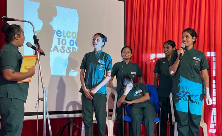 Ms. Alvita served as the Master of the Ceremony, while Ms. Adlene and Mr. Subramanya escorted the dignitaries, including Mr. Pritesh D'Sa, Administrator, Mrs. Sandra Lobo, Principal, Dr. Ansuya, Associate Professor, Department of Community Health Nursing, MCON, and Mr. Amol, Assistant Lecturer, Department of Community Health Nursing, MCON.