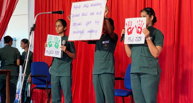 The event commenced with a welcome speech by Ms. Vinilda, followed by addresses from Joyce Ma'am, Mr. Joel D'Sa (Management Committee), and Mrs. Sandra Lobo, Principal of St. Lawrence English Medium School. A Kannada skit titled "My Body, My Safety" and "Substance Abuse" was performed by both boys and girls of II year PBBSc students. To raise awareness about Menstrual Hygiene, a dedicated menstrual hygiene session and skit were held for girls from 5th to 10th standards, a PowerPoint presentation by Ms. Adlene and Ms. Vidya, followed by a question-and-answer session, and an exercise/dance segment.