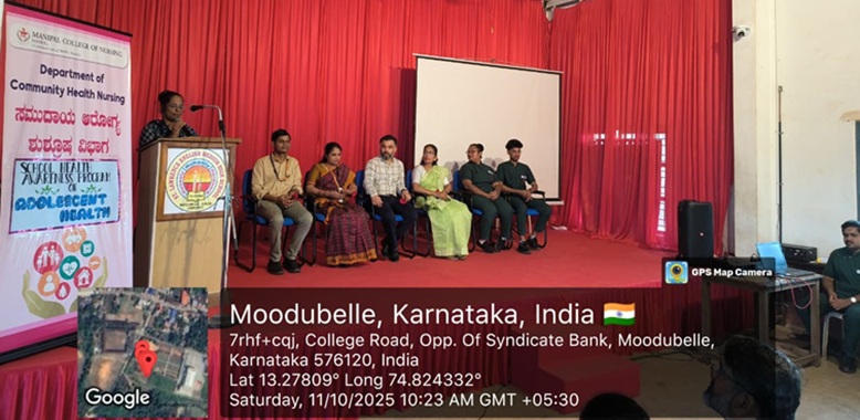 On October 11, 2025, the students of the II year PBBSc nursing and the Department of Community Health Nursing, MCON, MAHE, Manipal, organized an impactful school health awareness program on "Adolescent Health" at St. Lawrence English Medium School, Moodubelle, from 10:00 AM to 12:00 PM. The initiative aimed to educate school children on Adolescent health, including Menstrual health.