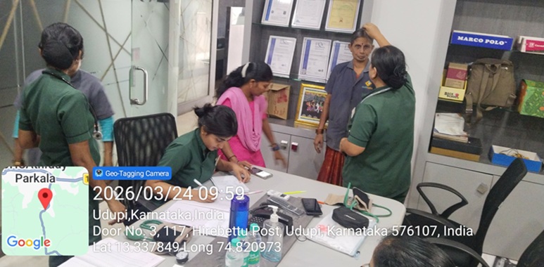 A total of 98 workers participated in the programme, of whom 34 were females and 64 were males. The programme included general health assessment, blood pressure screening, GRBS testing, BMI calculation, and screening procedures related to communicable diseases. Of the 98 participants, 47 workers underwent GRBS testing; four had elevated blood sugar levels above 140 mg/dL. During blood pressure screening, 9 workers were identified with high blood pressure. In addition, Body Mass Index (BMI) was calculated for the participants, revealing that 24 workers were overweight and 12 workers were underweight, and were referred to PHC Hirebettu.
