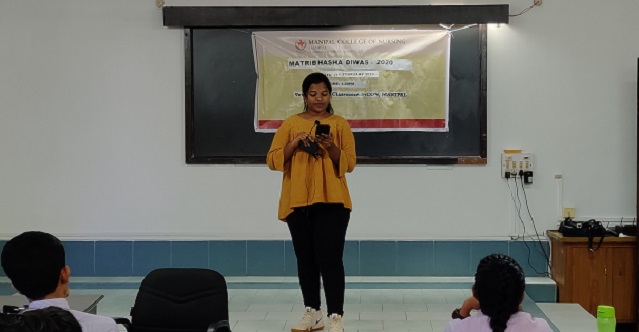 Matribhasha Diwas was organized by Student Nurses Association(SNA) 19-20 on 21st February 2020 at 4.00 pm in the 3rd floor BSc classroom under the guidance of Mr.Vinish V, SNA Cultural Advisor. Ms. Beula Aniyan, SNA Cultural Chairperson welcomed the gathering. Students delivered a speech in various languages like Malayalam, Tamil, Kannada, Telugu, Hindi, Bengali, Marathi and Konkani on the theme “ Mera Bharath Mahaan”.Vote of thanks was delivered by Ms.Beula Aniyan, SNA Cultural Chairperson and the program came to an end by 4:45 pm.
