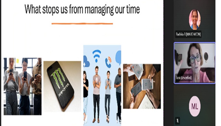 The Department of Fundamentals of Nursing conducted a guest lecture on “Time Management” for first-semester BSc Nursing students on 5th August 2025 between 3 and 4 pm through the MS Teams online platform. The session was led by Dr. Toni Bewley, Honorary Professor at Liverpool University, UK, and Adjunct Faculty at Manipal College of Nursing. Dr. Bewley shared valuable insights on organizing time effectively to enhance academic performance and clinical preparedness. She highlighted the constructive use of mobile phones and digital media to foster skill development and promote compassionate patient care. This session contributed meaningfully towards achieving several Sustainable Development Goals (SDG 4: Quality Education), particularly those related to quality education, good health and well-being, and industry innovation through digital literacy.