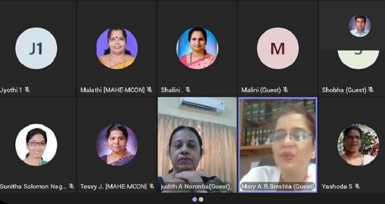 Manipal College of Nursing, MAHE, Manipal has organized a webinar on the topic “Sexual Harassment of Women at Workplace” (Prevention, Prohibition and Redressal), on March 22, 2022, between 11.30 am and 12.30 noon. Mrs, Mary Anne Ranjani Shresta, Advocate, Notary Public and Christian Marriage Registrar, Legal Point, Manipal, Udupi shared her expertise on the topic. She highlighted the laws and guidelines to protect women, the different physical, verbal and nonverbal forms of sexual harassment at the workplace, various committees and their roles, inquiry into complaints and inquiry reports. The details of the acts available to address also were discussed by her. She also threw light on the duties of the various district officer and liability for non-compliance to the act. She empowered the participants by suggesting the different ways that can be followed by the women at the workplace to prevent and stop sexual harassment.