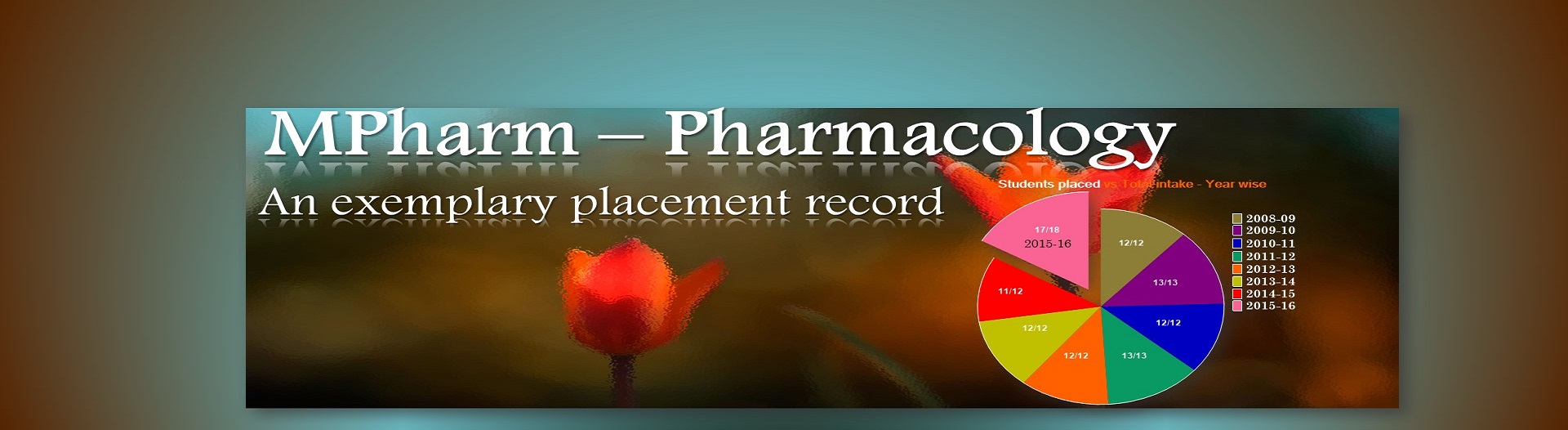 Pharmacology is a subject, which connects the other disciplines of pharmaceutical sciences with medicine. This branch of science equips a student with the ability to appreciate the establishment of dose, dosage, efficacy, and safety of medicines, their mechanisms, and disposition. Pharmacology gives immense scope for exploration into diversified subdomains such as signaling and molecular mechanisms of medicines, clinical pharmacology and biopharmaceutics, non-clinical and clinical trials. This opens up opportunities for further academic upgradation, sometimes with funded research projects of national importance supported by government funding agencies.
