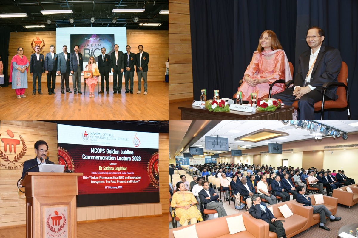 The Golden Jubilee Commemoration Lecture 2023, sponsored by the IPCs, was held at 10.30 AM on 11 February 2023, at Dr TMA Pai Auditorium. The Department of Pharmaceutical Regulatory Affairs and Management, MCOPS, arranged the event, and Dr Sadhna Joglekar, Senior Vice President and Head of the Global Drug Department at Novartis Hyderabad was the invited speaker. Dr Joglekar elaborated on the "Indian Pharmaceutical R&D and Innovation Ecosystem: The Past, Present, and the Future".