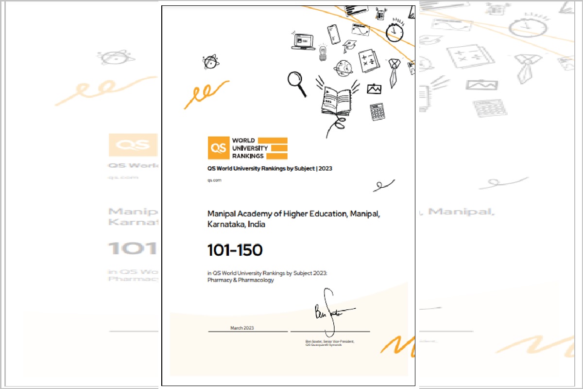 Manipal College of Pharmaceutical Sciences (MCOPS), the constituent unit of Manipal Academy of Higher Education (MAHE) and the sixty year old premier institution for pharmacy education and research in India is once again listed in the QS World University ranking 2023, by the subject Pharmacy and Pharmacology. The institute has retained its last year’s ranking which is in the range of #101-150. MCOPS has achieved a phenomenal position in terms of academic excellence, infrastructure facilities, research and collaboration. Ever since its inception, the institute has never compromised with quality and has keenly focused on molding professional pharmacists suitable for various key roles in India and abroad.