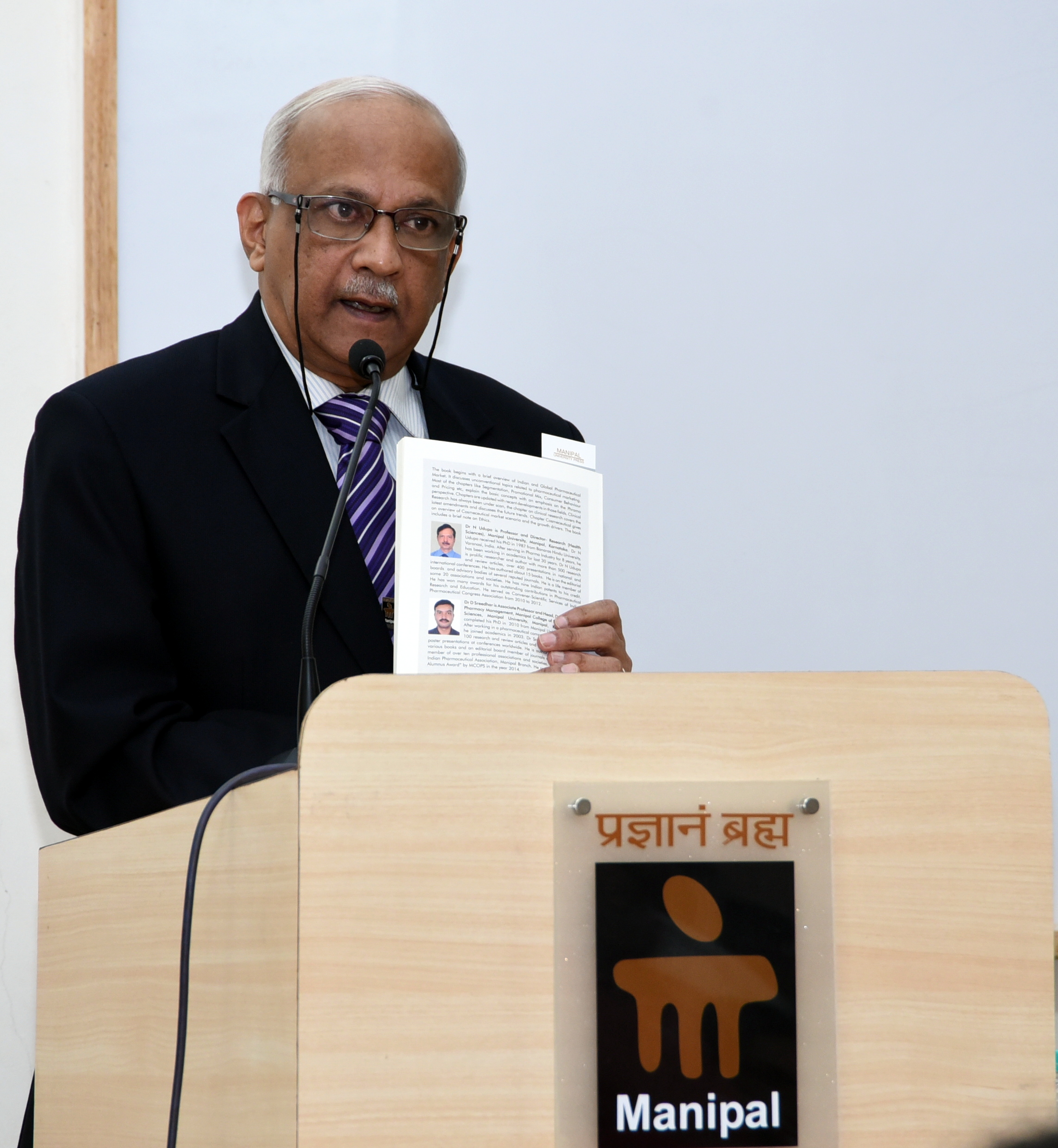 A book titled, “Pharmaceutical Marketing Management”, edited by Dr N Udupa and Dr D Sreedhar (both of, Department of Pharmaceutical Management, MCOPS) was released at a simple function held in MCOPS on 14 January 2016. This is the 52nd publication of Manipal Academy of Higher Education Press. Dr H Vinod Bhat, Vice Chancellor of Manipal Academy of Higher Education and mentor of Manipal Academy of Higher Education Press presided over the function. The chief Guest Dr Raveendranath Nayak, Director, School of Management, officially released the book in the presence of a large audience, comprising invited guests, faculty members and research scholars of MCOPS. Ms Savitha Shastry in her welcome address said that MUP has been publishing one book every month since its inception in 2011. She further said that MUP has already published four books in pharmacy. She lauded Dr N Udupa for his enthusiasm and in having a book-per-year target. Dr Raveendranath Nayak emphasised on the marketing strategies discussed under eight chapters in the book. He remarked that these are ‘the bread and butter topics of marketing that are applied to Pharmaceutical Industry. The book discusses about segmentation and promotion of market, consumer behaviour and pricing as well as clinical research and ethics. Dr H Vinod Bhat remarked that MUP has not focussed on any specific stream or subject in publishing books. However, the emphasis is on maintaining the quality along with quantity. “I take delight in diversity, we must encourage profligacy in writing”, he added. Dr N Udupa recalled fondly his association with Manipal Academy of Higher Education Press. He also congratulated the copy editing team and the authors for the successful accomplishment of the book. Dr Manthan Janodia, who compered the function, also proposed the vote of thanks.
