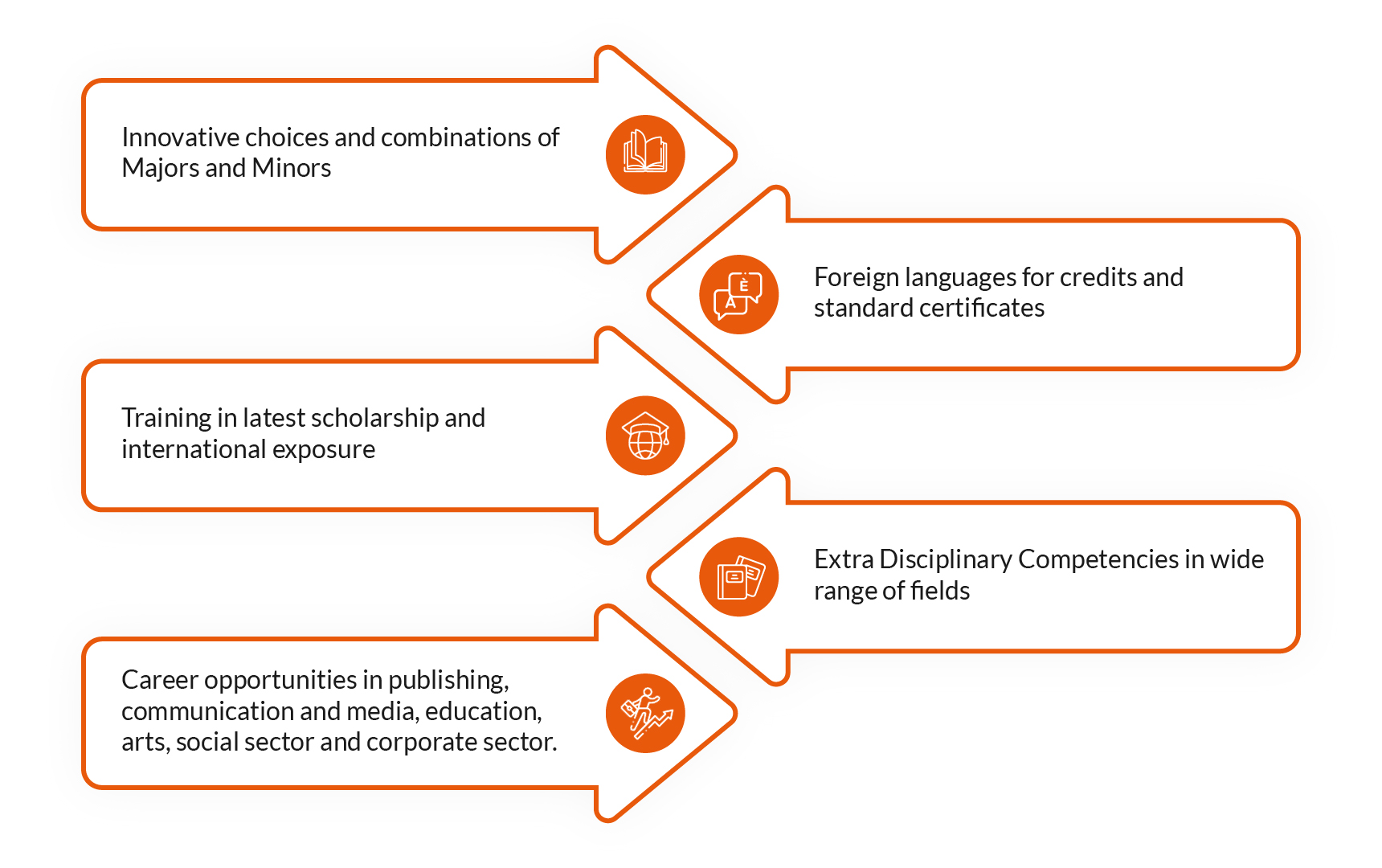An inventive multidisciplinary undergraduate program that invites students to curate their own learning pathways and nurture adaptive skillsets in the Humanities and Social Sciences. The dynamic curriculum caters to evolving global professional standards that support students to graduate in three years. Students have the additional advantage of choosing a fourth-year research track towards a BA (Honors) degree.