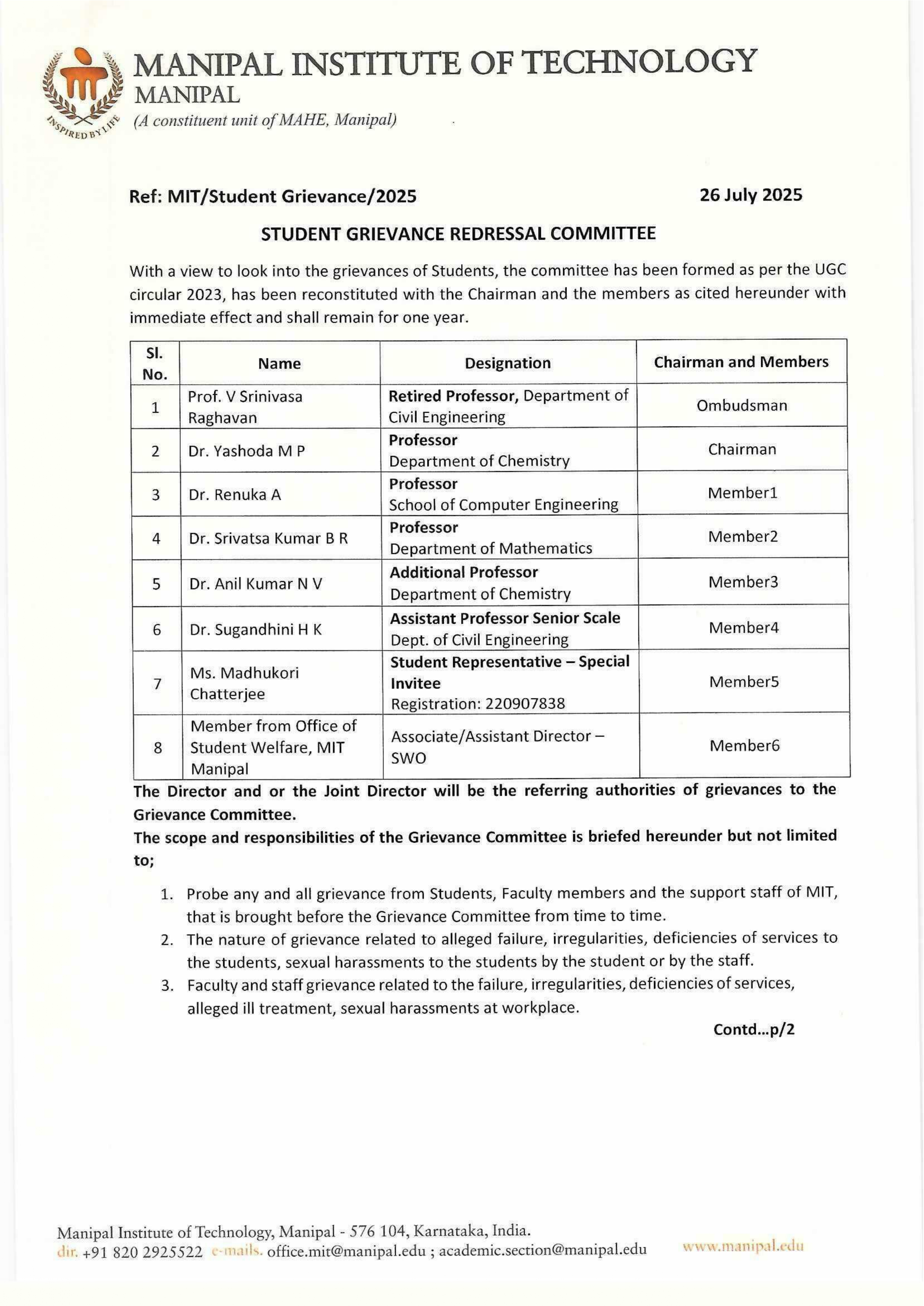 Student Grievance Redressal Committee