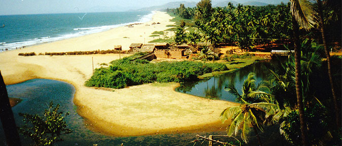 Just a few km off the National Highway 17, after a place called Honnavar, is a beautiful tourist centre known as Gokarna. It has a famous beach called the 'OM' beach. This beach gets its name from its shape which makes an 'OM' like peripheral. With its narrow streets, traditional houses and temples, the nondescript town of Gokarna has become the favourite haunt of Hindu pilgrims, Sanskrit scholars and beach buffs. Locals believe that Gokarna derives its name from a legend in which Lord Shiva emerged from the ear of a cow. The Gokarna beach forms the coast of the town while the other four beaches lie towards the south of Gokarna. Kudle and Om are about 6 km from Gokarna town along a muddy hill; they are accessible by rickshaw or foot. Half moon and Paradise are beyond Om beach and are accessible only by foot or boat.