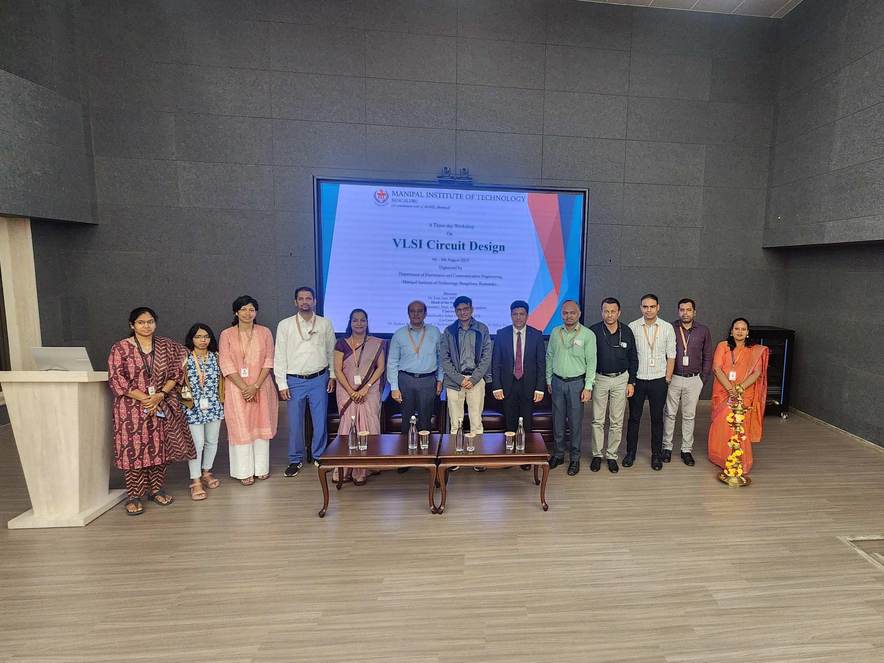 The Department of Electronics & Communication Engineering − VLSI Group at MIT Bengaluru organized a three-day workshop on “VLSI Circuit Design” from 4th to 6th August 2025. The event witnessed enthusiastic participation from 50 students across the BTech ECE, ECM, and VLSI programs, who gained valuable insights into industry-relevant topics.