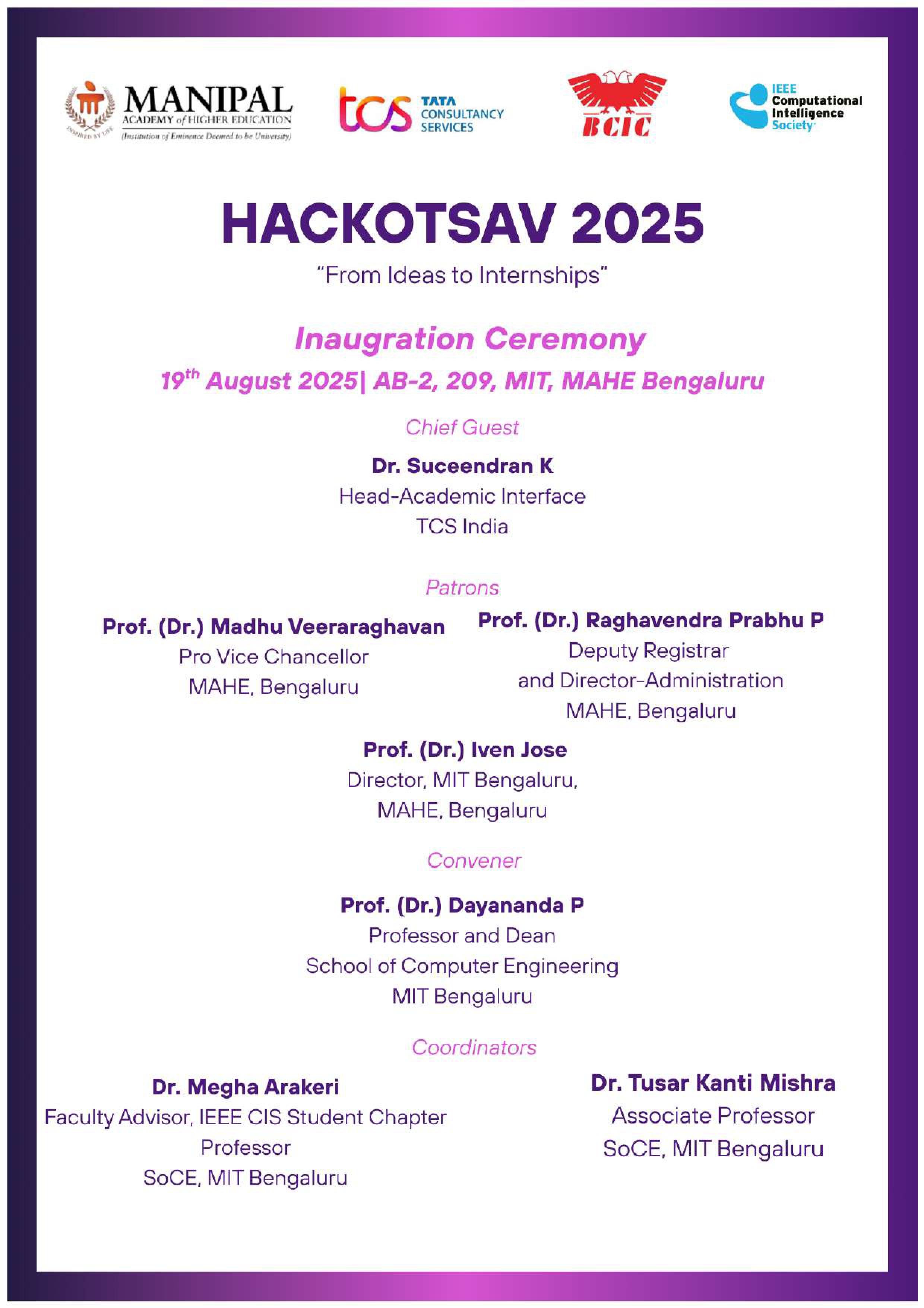 Hackotsav 2025- Finale, organized by the School of Computer Engineering and IEEE CIS Student Chapter MITB in collaboration with TCS and BCIC.
