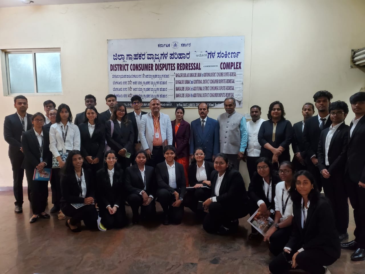 Legal Services Clinic, Manipal Law School, MAHE, Bengaluru campus organized Consumer Court visit on 8th September,2023 to get its law students accustomed with the knowledge of consumer court proceedings and its numerous facets. The proceedings were chaired by Hon'ble Sh. Ramchandra, President, 4th Additional Consumer Forum, along with Judicial Members in Shantinagar Branch Bengaluru. Students were also addressed by Hon'ble president of the Consumer Forum along with other members with respect to the filing of complaint , proceedings , summery proceedings, parties in proceedings, jurisdiction of consumer court, knowledge of consumer rights and the role of Consumer Protection Act to regulate different trade policies as to how consumers can avail of protections under the same. This group of law students was laid by Dr. Manjunath CG, Co-Head, Legal Services Clinic, MLS, Dr. Shahana Reddy, Co-head, Legal Services Clinic ,MLS and Dr. Rahul Mishra, Head, Legal Services Clinic, MLS under the direction of Prof( Dr.) Avinash Dadich ,director, Manipal Law School, Bengaluru campus.