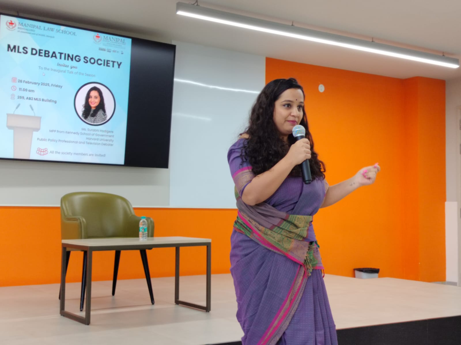 Manipal Law School was honoured to host Ms. Surabhi Hodigere as she inaugurated the debating season at MLS. She has a Master’s in Public Policy from Kennedy School of Government, Harvard University and is a Public Policy Professional and Television Debater.