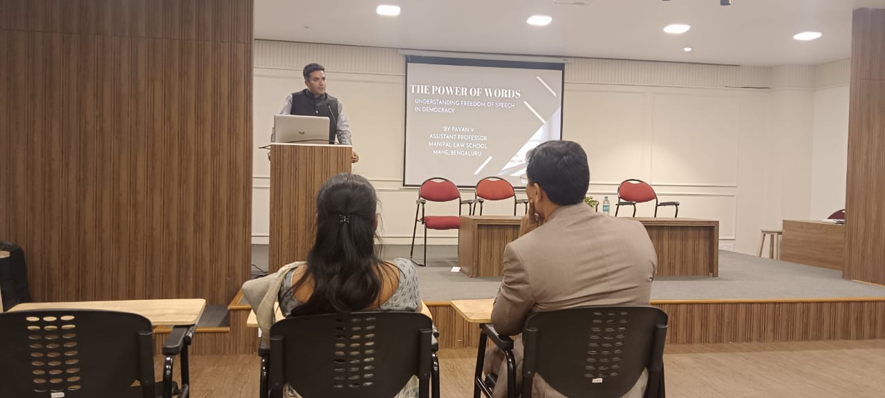 Dr. Pavan V., Assistant Professor of Law at Manipal Law School, was invited as the Chief Guest and Speaker by Nagarjuna College of Engineering and Technology, Devanahalli, Bengaluru, to commemorate Indian Constitution Day on 26th November 2024. Dr. Pavan delivered a thought-provoking speech titled 'The Power of Words: Understanding Freedom of Speech in Democracy,' exploring the constitutional underpinnings of free speech, its significance in a democratic society, and the responsibilities it entails. The event celebrated the spirit of the Indian Constitution, inspiring attendees to reflect on the role of constitutional values in shaping an equitable and just society.