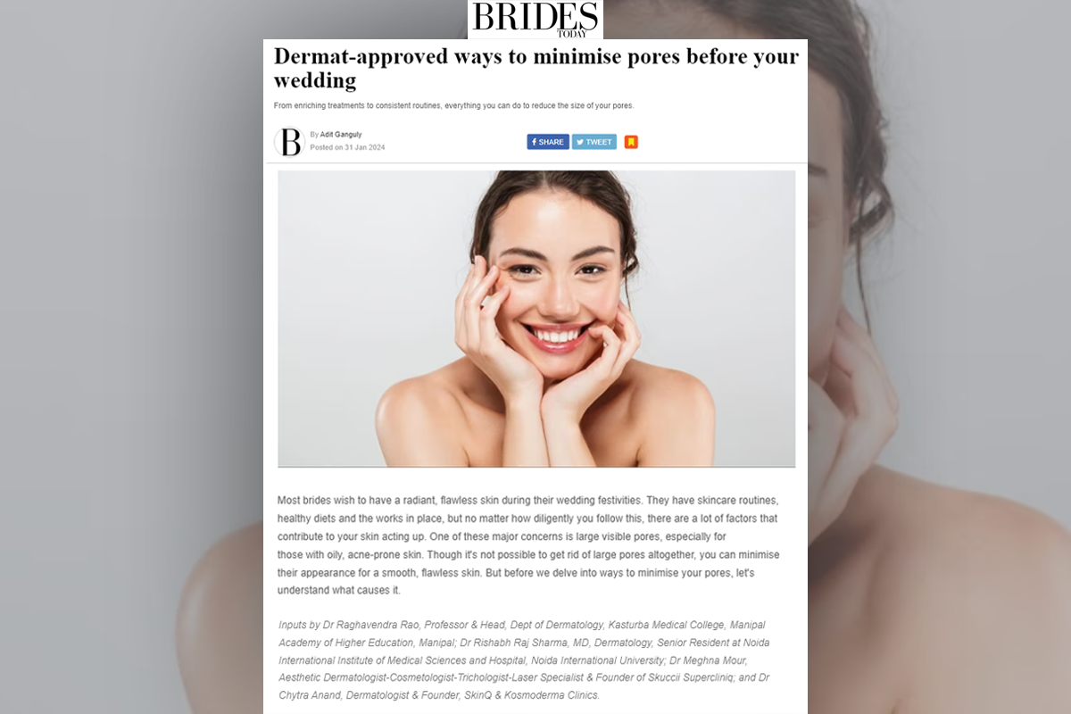 Manipal, 31 January 2024: In the article "Dermat-approved ways to minimise pores before your wedding", valuable insights are given by Dr Raghavendra Rao, Professor & Head, Dept of Dermatology, Kasturba Medical College (KMC), Manipal.