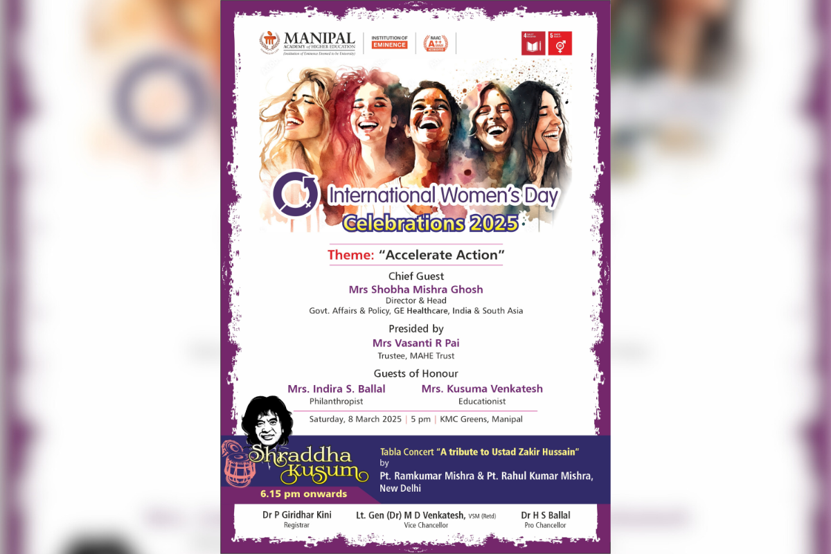 Manipal Academy of Higher Education (MAHE) will celebrate International Women’s Day on 8th March 2025 with the theme "Accelerate Action", emphasising the need for progressive steps towards gender equality and empowerment.