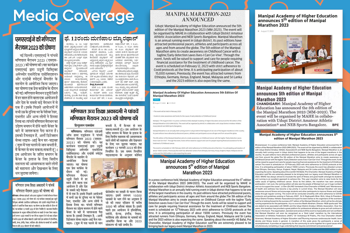 Dr Vinod C Nayak- Secretary Sports Council, Manipal Academy of Higher Education said “Manipal Marathon comes with a unique theme every year, and this year too, it is no different. Spreading awareness is our prime goal, and through Manipal Marathon, we will continue to do so. Manipal Marathon 2023 will strive to create awareness on Childhood Cancer.