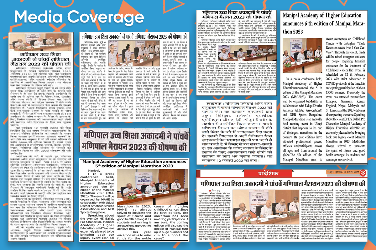 Speaking about the event Dr H.S. Ballal, Pro Chancellor, Manipal Academy of Higher Education said “We are extremely pleased to be bringing back our legacy event Manipal Marathon in 2023. MAHE has always strived to inculcate the spirit of fitness and good health amongst its students and running is an excellent approach to achieve this. This year’s marathon aims to raise funds for the noble cause of fighting childhood cancer. Since its first edition, the marathon has seen amazing participation. I am sure, the coming edition will also see the people of Manipal turn up in huge numbers and run to support the cause”.