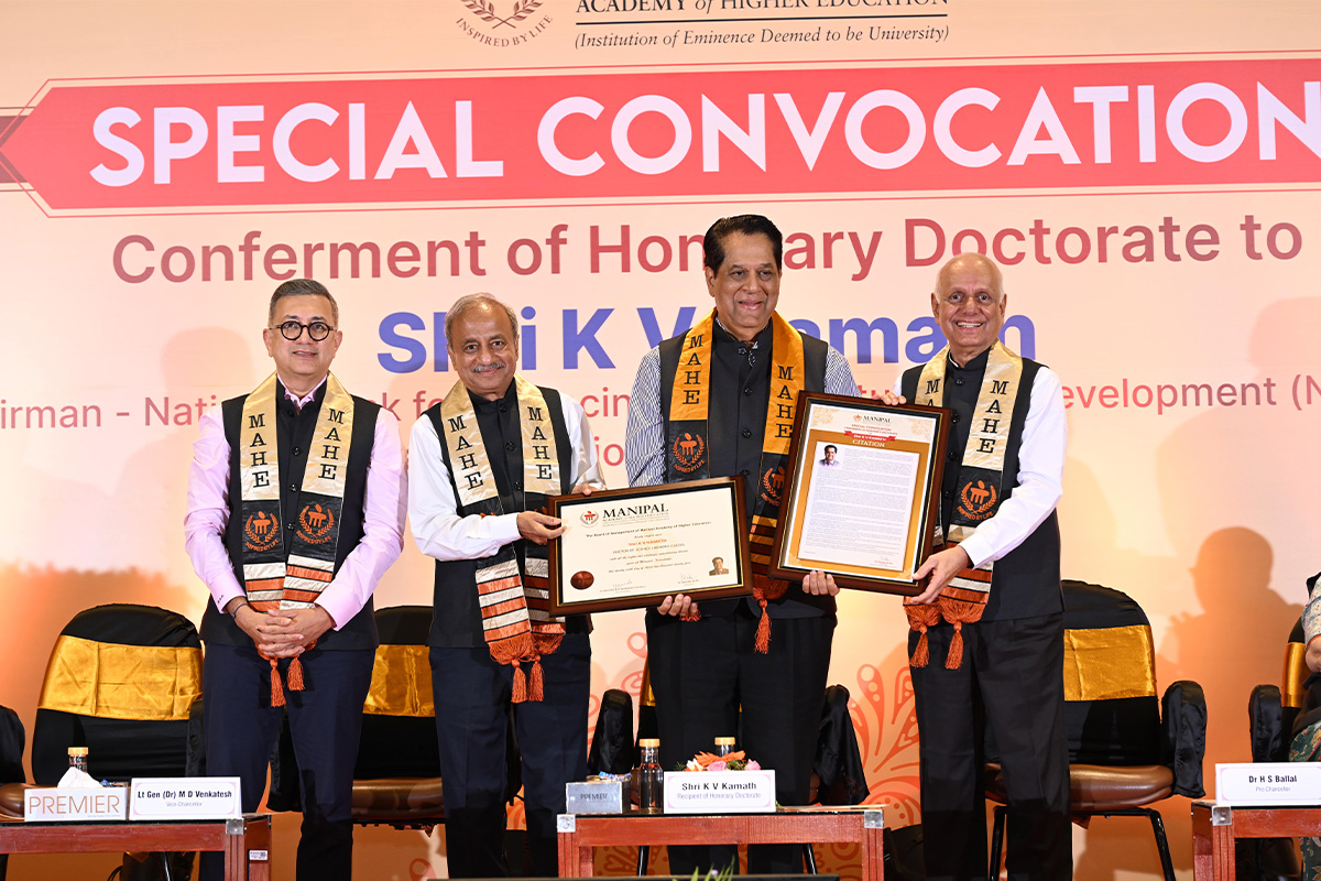 Speaking on the recognition, Mr Kamath said, “Receiving this honorary doctorate from MAHE is a humbling recognition that I cherish deeply. It is my honor to stand here in the institute I have admired for so long. The institute serves as a tribute to creative thinking of Dr TMA Pai who thought of establishing an educational institution in the era when there were just handful of institutes. Throughout my career, I have strived to put India’s institutions on the global map and to advocate for sustainable development and being acknowledged by such a respected institution as MAHE motivates me even further. This recognition is not just for me, but for everyone who has collaborated with me on this journey. This is a tremendous honour, and I am grateful for the trust that MAHE has placed in me.”